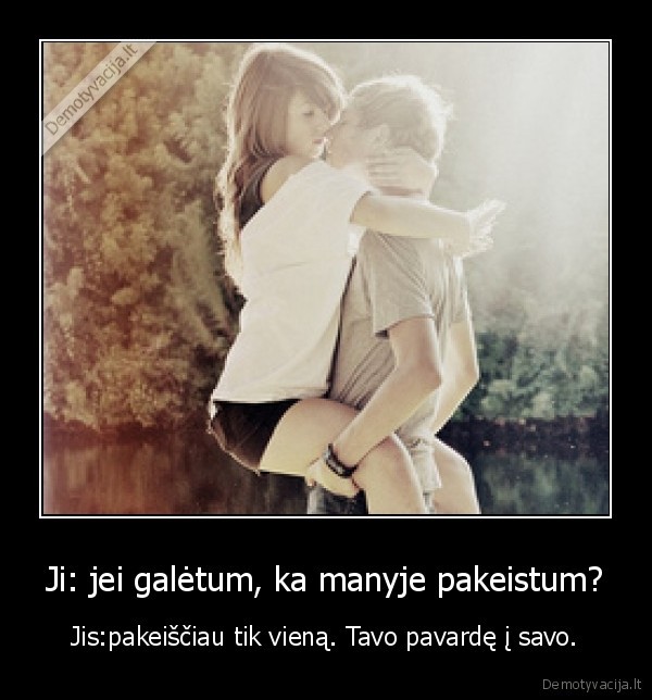 Ji: jei galėtum, ka manyje pakeistum? - Jis:pakeiščiau tik vieną. Tavo pavardę į savo.Nepatikrinti demotyvatoriai |