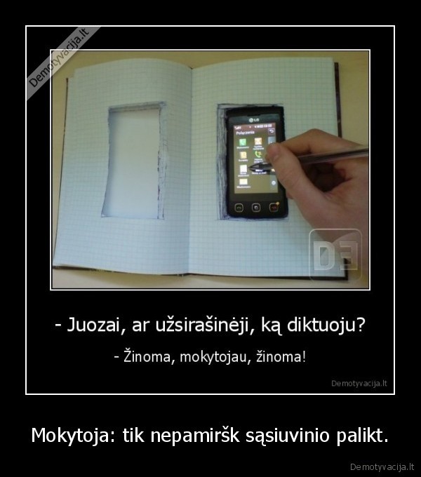 Mokytoja: tik nepamiršk sąsiuvinio palikt.