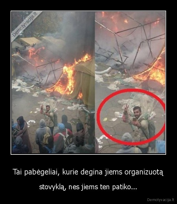 Tai pabėgeliai, kurie degina jiems organizuotą - stovyklą, nes jiems ten patiko...