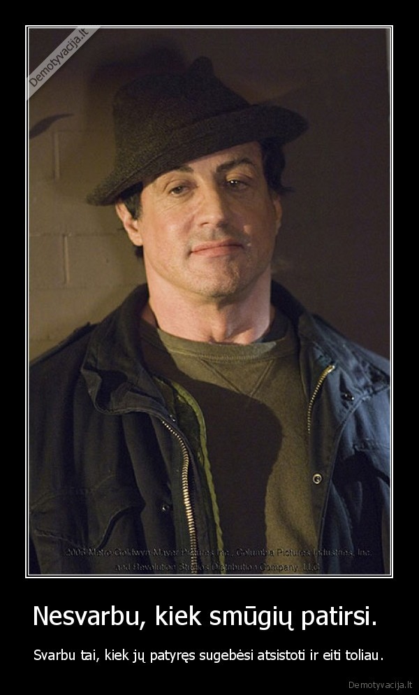 Nesvarbu, kiek smūgių patirsi. - Svarbu tai, kiek jų patyręs sugebėsi atsistoti ir eiti toliau.Naujausi demotyvatoriai |