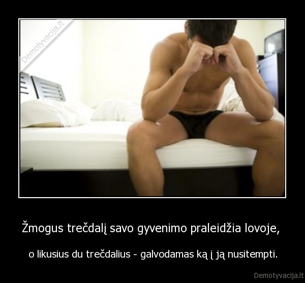 Žmogus trečdalį savo gyvenimo praleidžia lovoje, - o likusius du trečdalius - galvodamas ką į ją nusitempti.Naujausi demotyvatoriai |